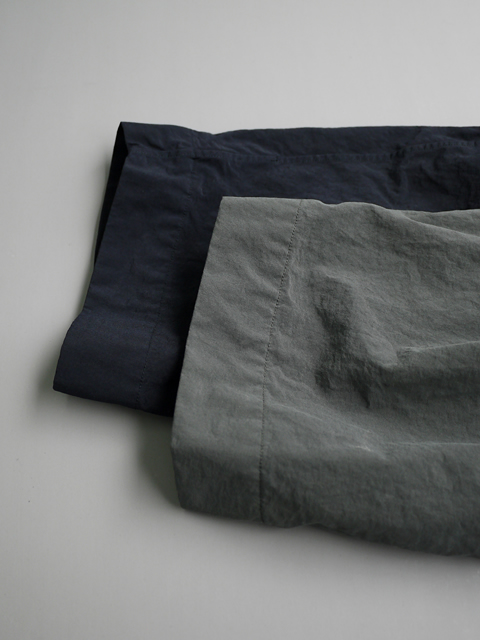 製品染め加工を施しているため、特徴として縫い目や縫い代部分に染料が入らずやや色が薄くなることや染まり方にムラがあること、縫い縮みが大きく出ることがあります。製品染め独特の風合いをお楽しみください。