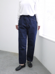もも周りで横に張り出すユニークなシルエットが特徴のモモヤマパンツ。裾にかけてゆるやかに細くなるワイドテーパードのフルレングスで、体型を気にせずゆったりと穿けるのに、洗練された印象を与えます。