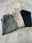 脇のタック奥に配された前後ポケットは、見た目のすっきり感を保ちつつ、十分な収納力を確保。ウエストはゴムと紐で調節できるので、リラックスして一日中快適に過ごせます。