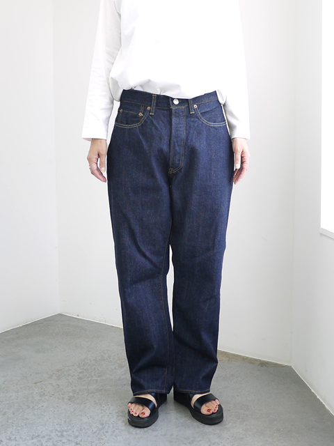 ヴィンテージデニムの奥深い魅力を現代のシルエットで蘇らせた、こだわりの一本。501XX後期モデルの縫製仕様を徹底的に研究し、バックポケットの隠しリベットや、1960年代まで見られたV字のステッチなど、ヴィンテージデニムが持つ希少なディテールを忠実に再現。さらに、パッチのウェストベルトを一筆書きで縫製することで、ユニークな表情を加えています。コインポケットの口にはセルビッジの耳を使用し、さりげないアクセントに仕上げられました。