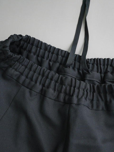 長めの丈感は、シューズにワンクッション置く着こなしで、こなれたスタイルを楽しめます。ウエストはゴム仕様に加え、内側のドロストコードでサイズ調整が自在。フロントはフェイクデザインのため、トップスをインしてもすっきりとした印象に。