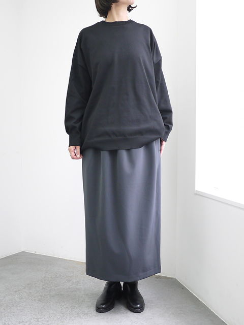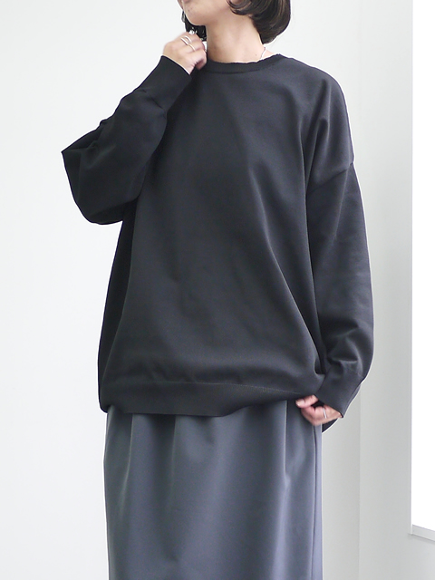 季節の変わり目に便利なクルーネックワイドプルオーバー。ゆとりのあるサイズ感に、若干の前後差のある裾ラインでヒップがきれいに隠れる着やすいデザイン。生地は天竺畦編み合繊のニット素材。ストレッチが効いているので着心地よく、カットソーのように気軽に着られて上品に見えます。シワにもなりにくく、洗濯可能なのでデイリーで使いやすいプルオーバーです。