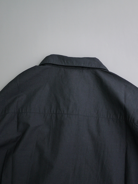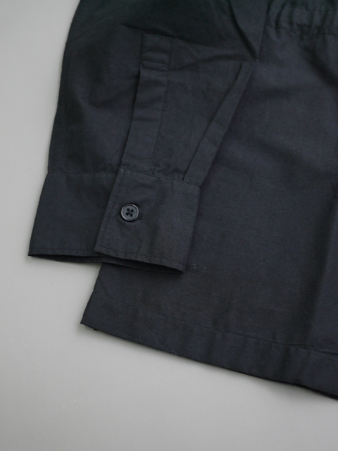 羽織りにも最適なミリタリーシャツ。40番手の中細糸を緻密に織り上げた、程よいハリと光沢感が特徴のポプリン素材を使用。透け感がなくしっかりとした仕上がりの100%コットン生地が魅力です。
