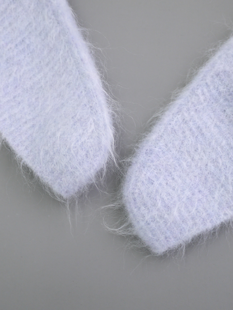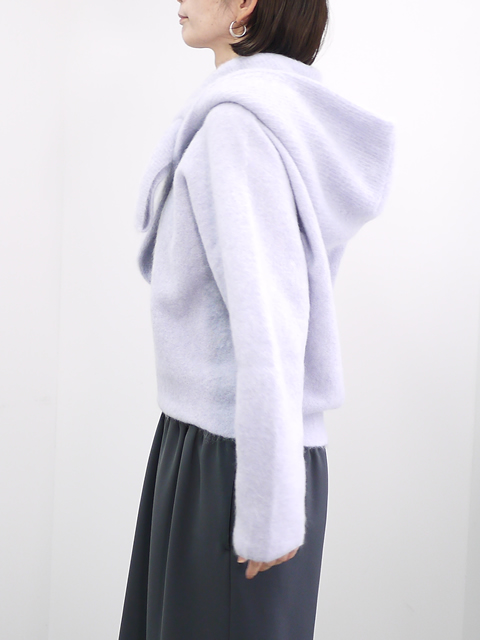 さらに、極上のスーパーキッドキッドモヘアを使用しているため、美しい毛足と軽さを持ち、毛抜けや毛玉にもなりづらい優れた編み地です。同素材のカーディガンとのコーディネートもおすすめです。