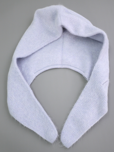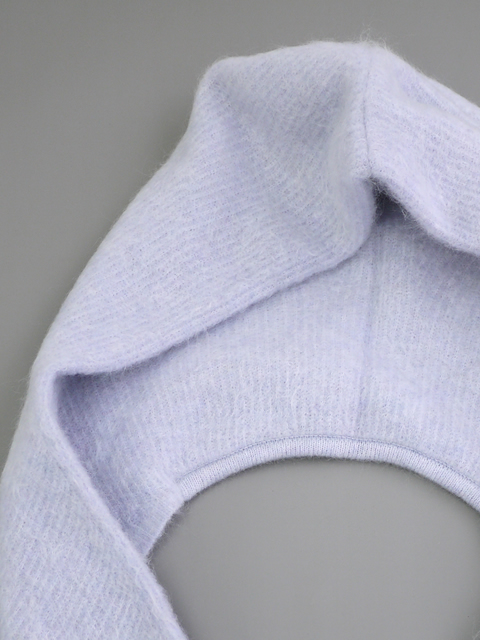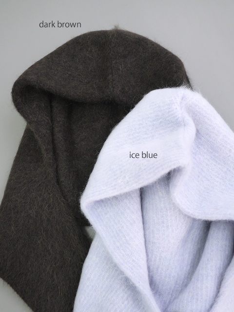 マルチウェイで楽しむ。風を通さない極上モヘアフード。アクセサリー感覚で使えるフード型のネックウォーマーです。そのまま肩にかけたり、片方に開いたホールに通してスカーフのように着用したりと、多彩なアレンジが楽しめます。二重仕立てで十分なボリュームがありながら、非常に軽く仕上げられているのもポイント。
