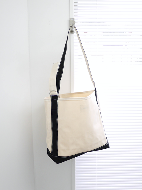 枝を集めるためのトートバッグから着想を得た、実用性の高いショルダー付きトートバッグ。斜め掛けができるショルダーベルトは、身体側に寄せて取り付けられているため、バッグを背負ったままでも物の出し入れがスムーズに行えます。また、ショルダーの長さ調節も可能です。