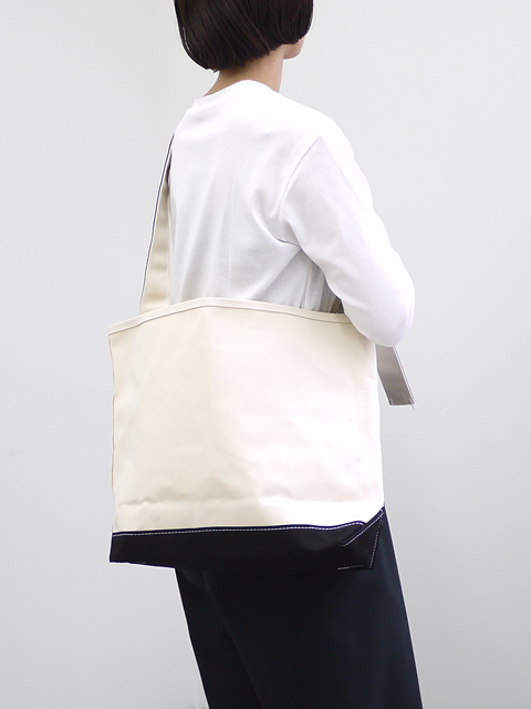 枝を集めるためのトートバッグから着想を得た、実用性の高いショルダー付きトートバッグ。斜め掛けができるショルダーベルトは、身体側に寄せて取り付けられているため、バッグを背負ったままでも物の出し入れがスムーズに行えます。また、ショルダーの長さ調節も可能です。
