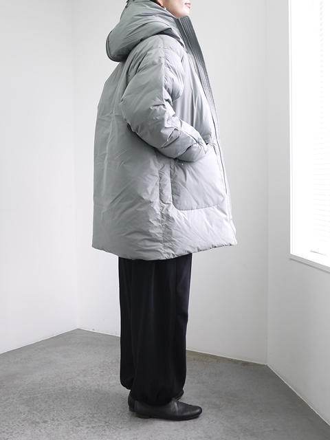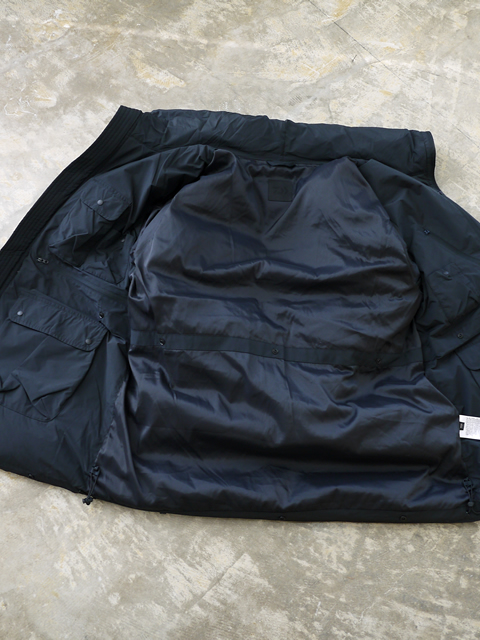 アメリカ軍のカデットパーカをデザインソースに、ダウンジャケットへとアレンジされた2WAYモデルです。繊細な風合いを持つ割繊糸(かっせんし)を使用したマイクロファイバー生地を採用。柔らかさに加え、後加工による微シワ感を付けることで、こだわりのヴィンテージ感を表現しています。さらに、撥水加工が施されており、急な天候変化にも対応できます。