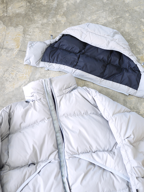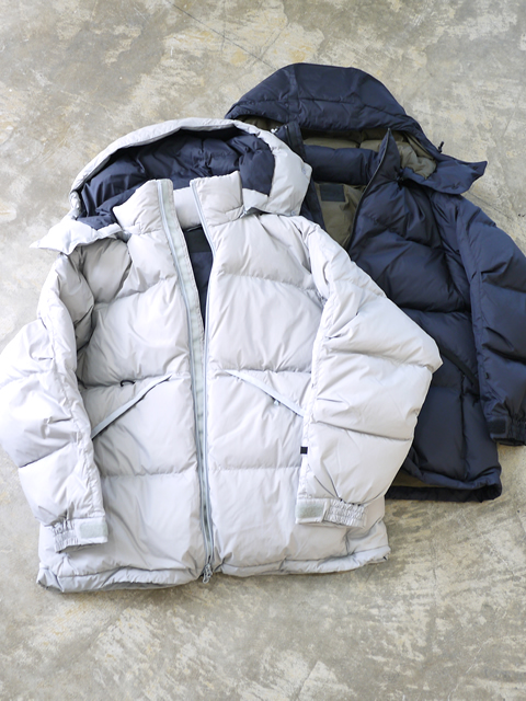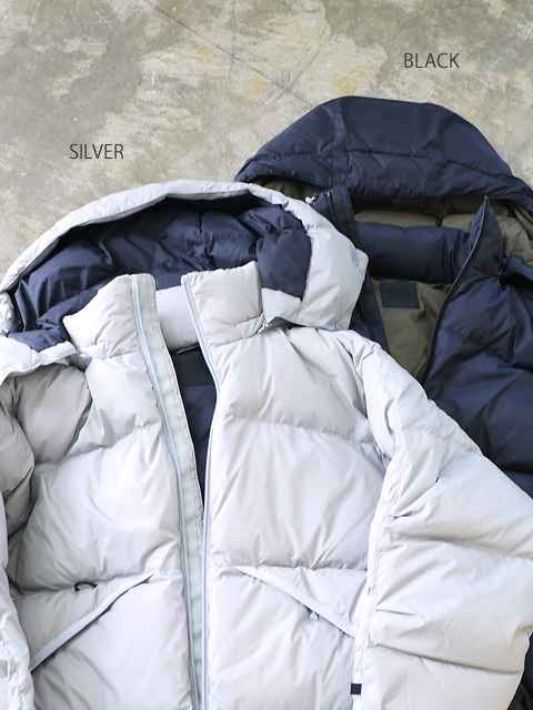 経糸と緯糸の染着差でリップル(波打ち)表現を出した、ナイロン40デニールのクラシックタイプ素材を採用したダウンジャケットです。急な雨にも対応できる撥水加工が付与されています。