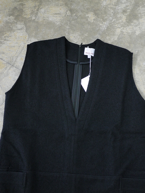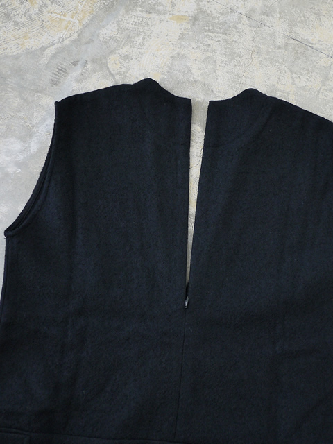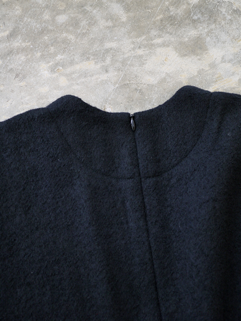 暖かなウール素材を使用した秋冬仕様で、インに合わせるトップス次第で幅広いスタイリングに活躍してくれる万能アイテム。着脱しやすいよう、後ろ中心にファスナーが付いています。