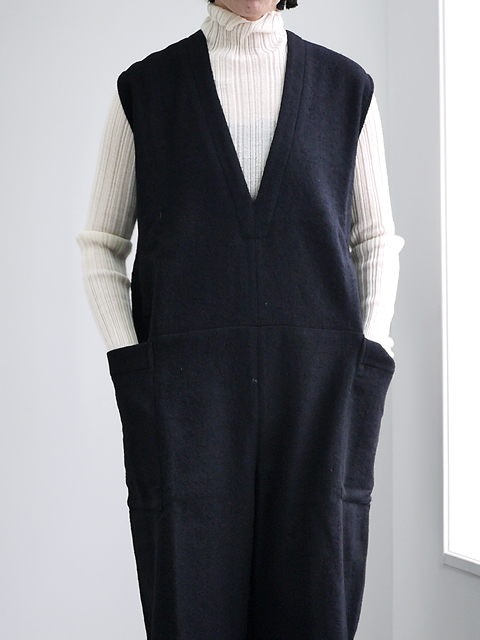 存在感のある定番。ウール素材のVネックジャンプスーツ