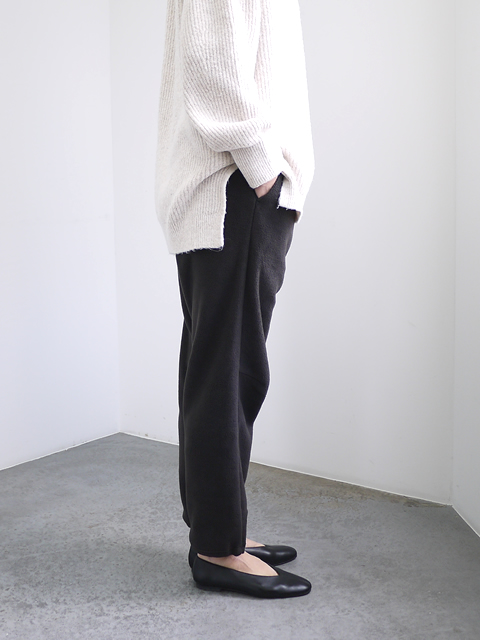 リラックスした穿き心地でありながら、上質な素材を用いることでカジュアルすぎず、女性らしい表情に見せてくれます。きれいめなスタイルにもデイリーにもコーディネートしやすい、汎用性の高い一本です。