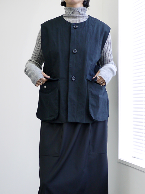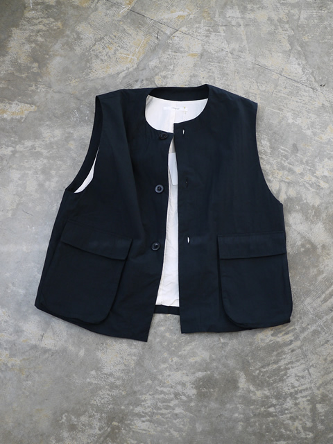 布帛ならではのハリ感のある表情が魅力で、大人のカジュアルスタイルにマッチするビッグフラップポケットベスト。くったりとしたヴィンテージのような上質なコットン素材を使用しており、シャツやカットソーとのレイヤードももたつきません。フラップの付いた大きめのポケットがアクセントに。