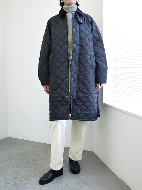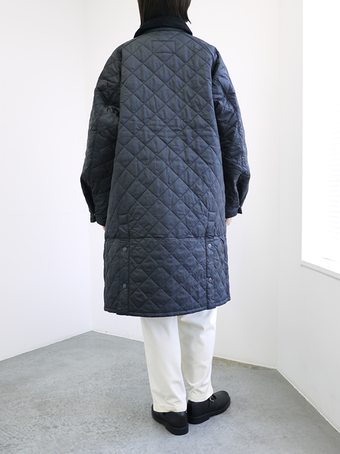 バブアーで人気の高いモデルEXMOORから、キルティングを使用したモデルが登場。バブアーを代表するロングコート、バーレーをベースにしながら、ひざ丈にアレンジされたミドルレングスのコートです。日常使いしやすく、軽快に着用いただけるのが特徴です。ロング丈のオーバーサイズデザインで、天候からもしっかりと身体を守ります。
