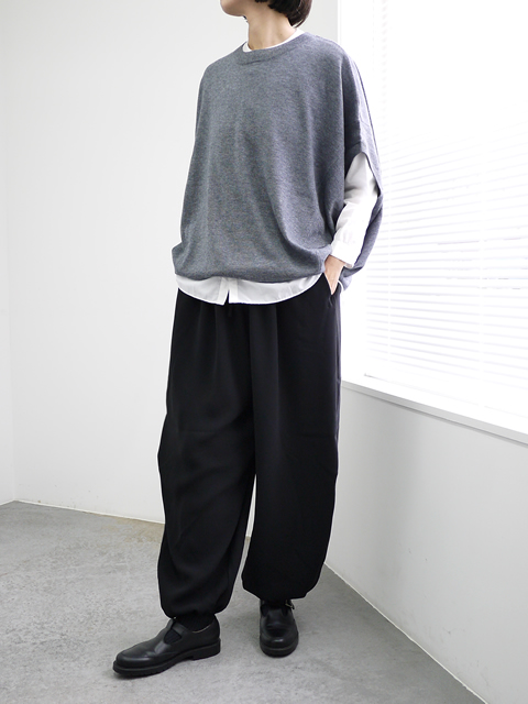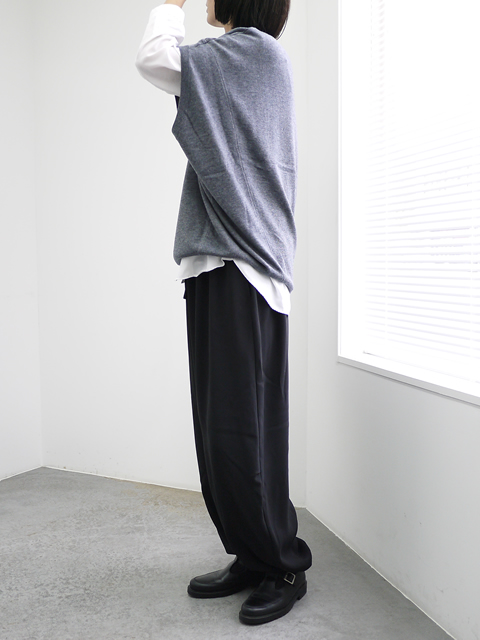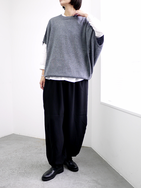 上品な面持ちのハイゲージニットを使用した一着で、ゆったりとしたアームデザインとコクーンシルエットが特徴的。ワンピースやシャツ、カットソーなど、様々なアイテムとのレイヤードスタイルを上品に楽しんでいただけます。