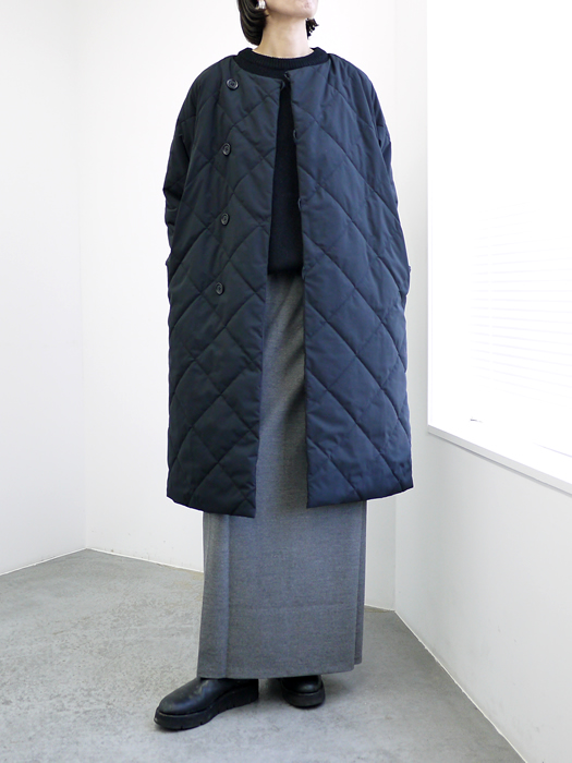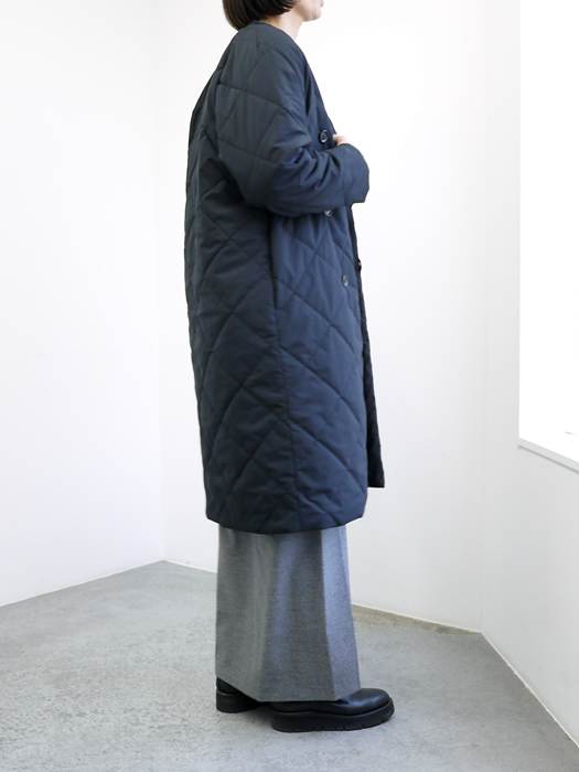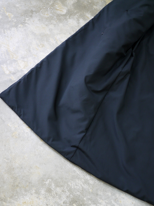 撥水加工が施されたマットな質感の生地は上品な印象です。ニットなど厚手のトップスの上に羽織ってもかさばらず、程よくボリュームを抑えてくれるため、すっきりと見せてくれます。重いコートが苦手な方にもおすすめです。