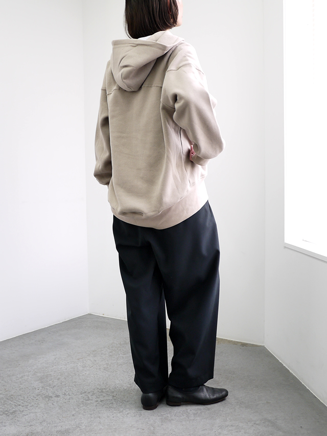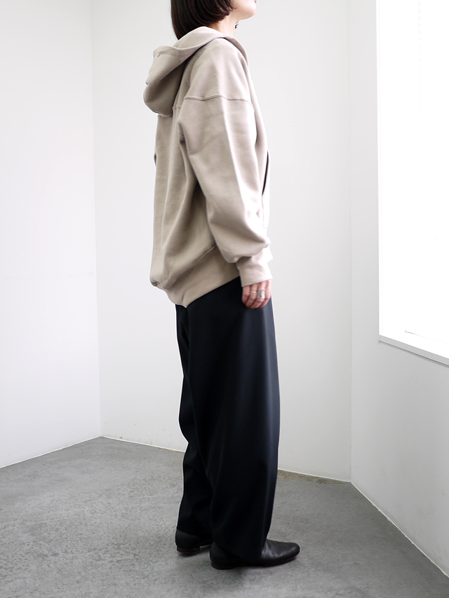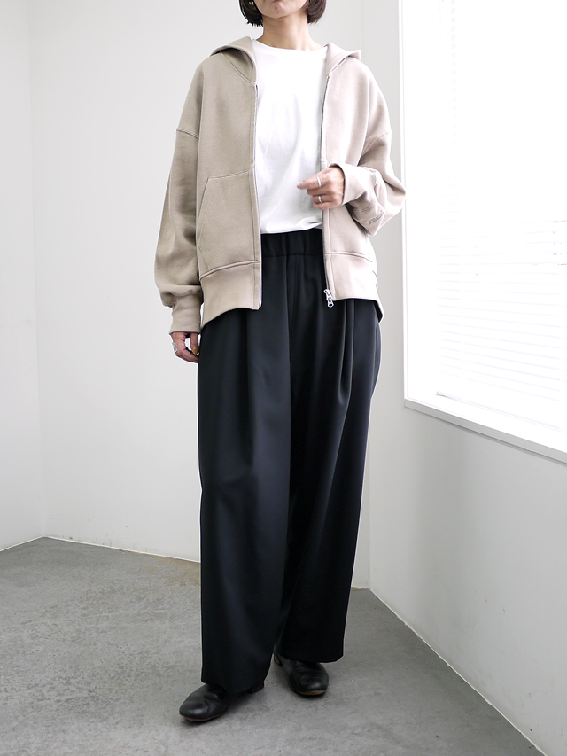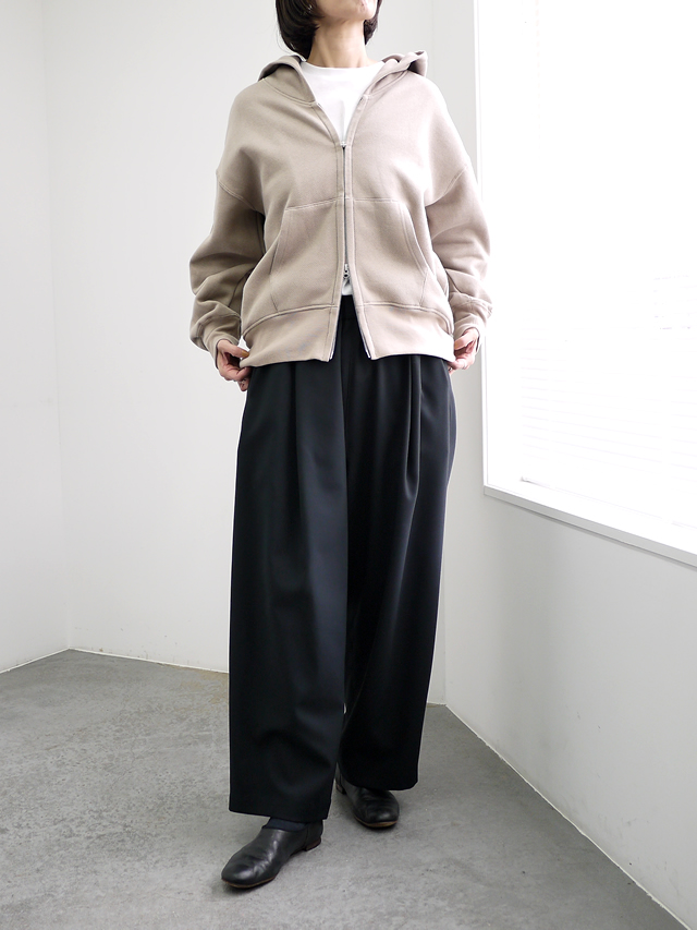 裏起毛素材を使用しているため、肌寒い季節にも暖かく過ごせるワイドフルジップフーディーです。全体的にゆったりとしたリラックス感のあるシルエットが魅力。