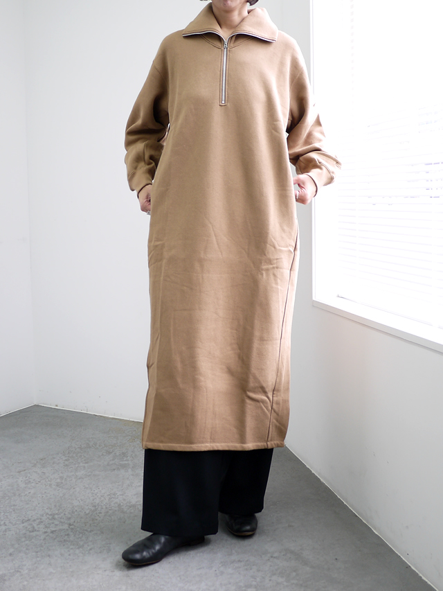 ふんわり暖かい。ハーフジップスウェットワンピース